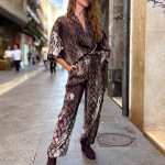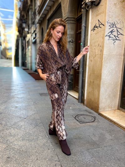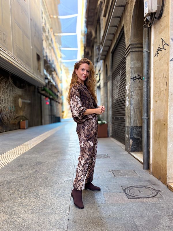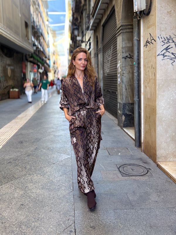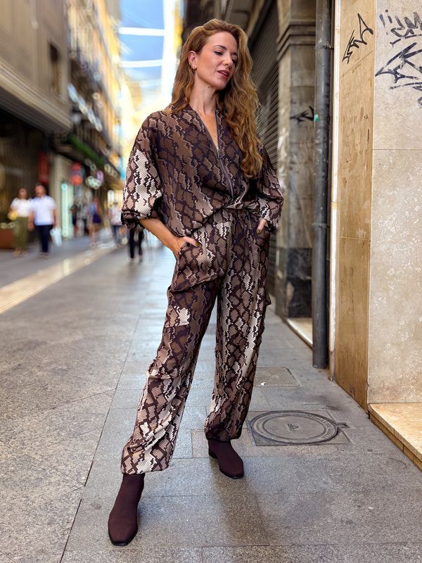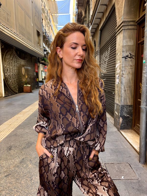 Bomber marrón y beige. Cierre con cremallera, puño y bajo  con goma.